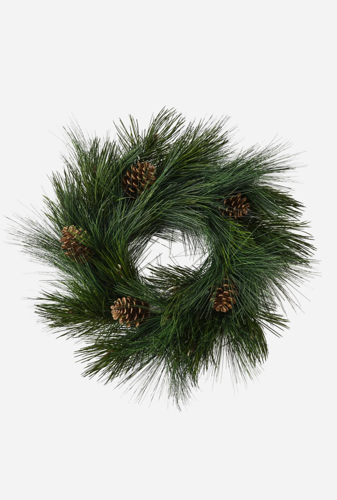 The Wreath made from faux Needle Pine and pinecones features a rich blend of realistic greenery and natural-looking cones. Perfect for adding a rustic, festive touch to your door or mantel this holiday season.
