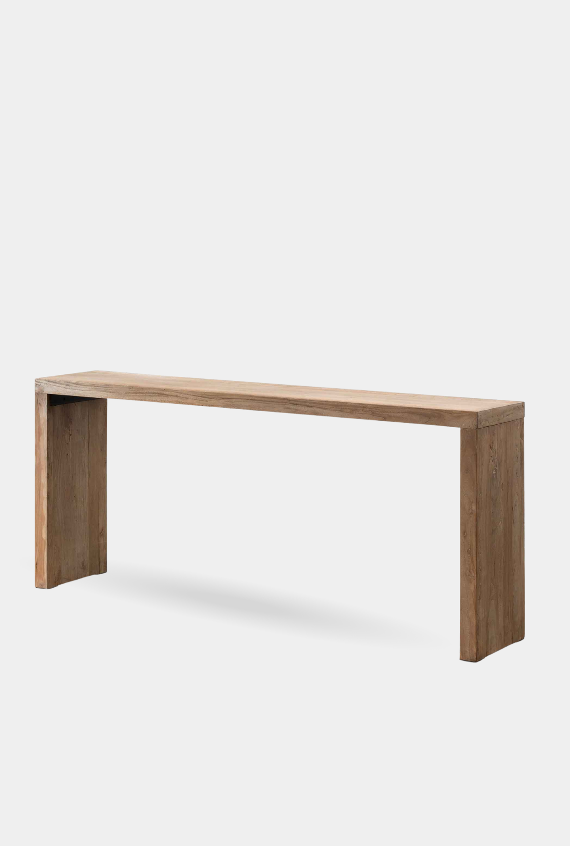 Crafted from warm oak-toned reclaimed timber, this console celebrates natural texture and timeless simplicity. Each piece showcases unique grain variations and character marks, bringing organic warmth and authenticity to any hallway or living space.