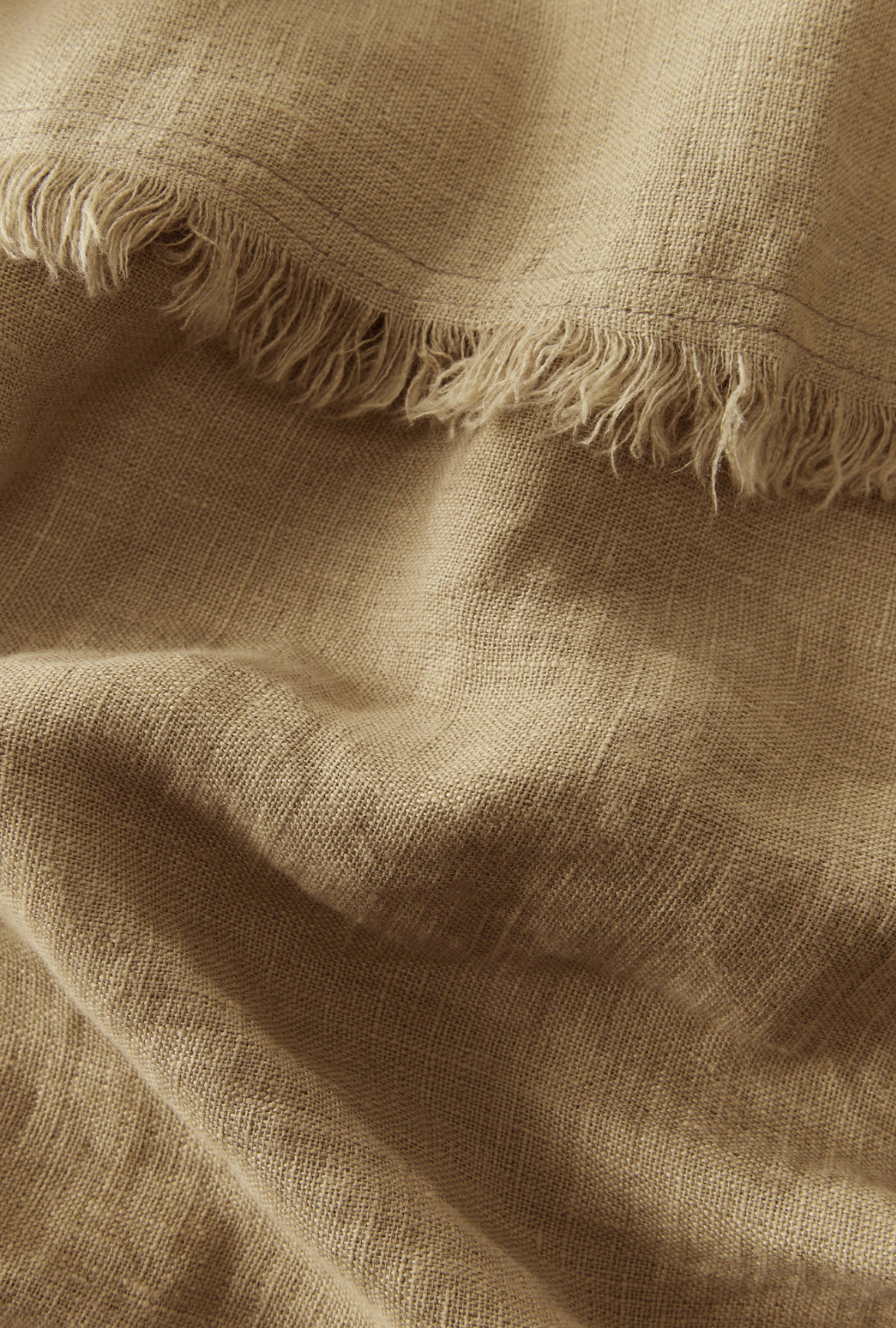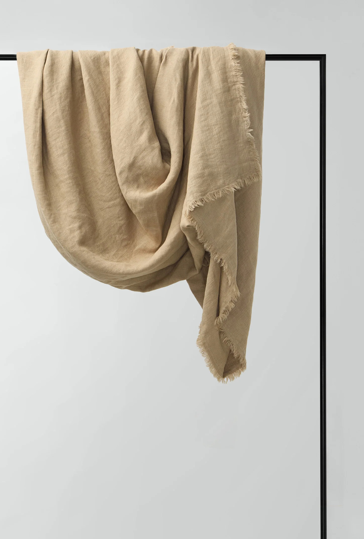 Crafted from a heavyweight pure linen, and finished with a delicate eyelash fringe and double stitch detail.