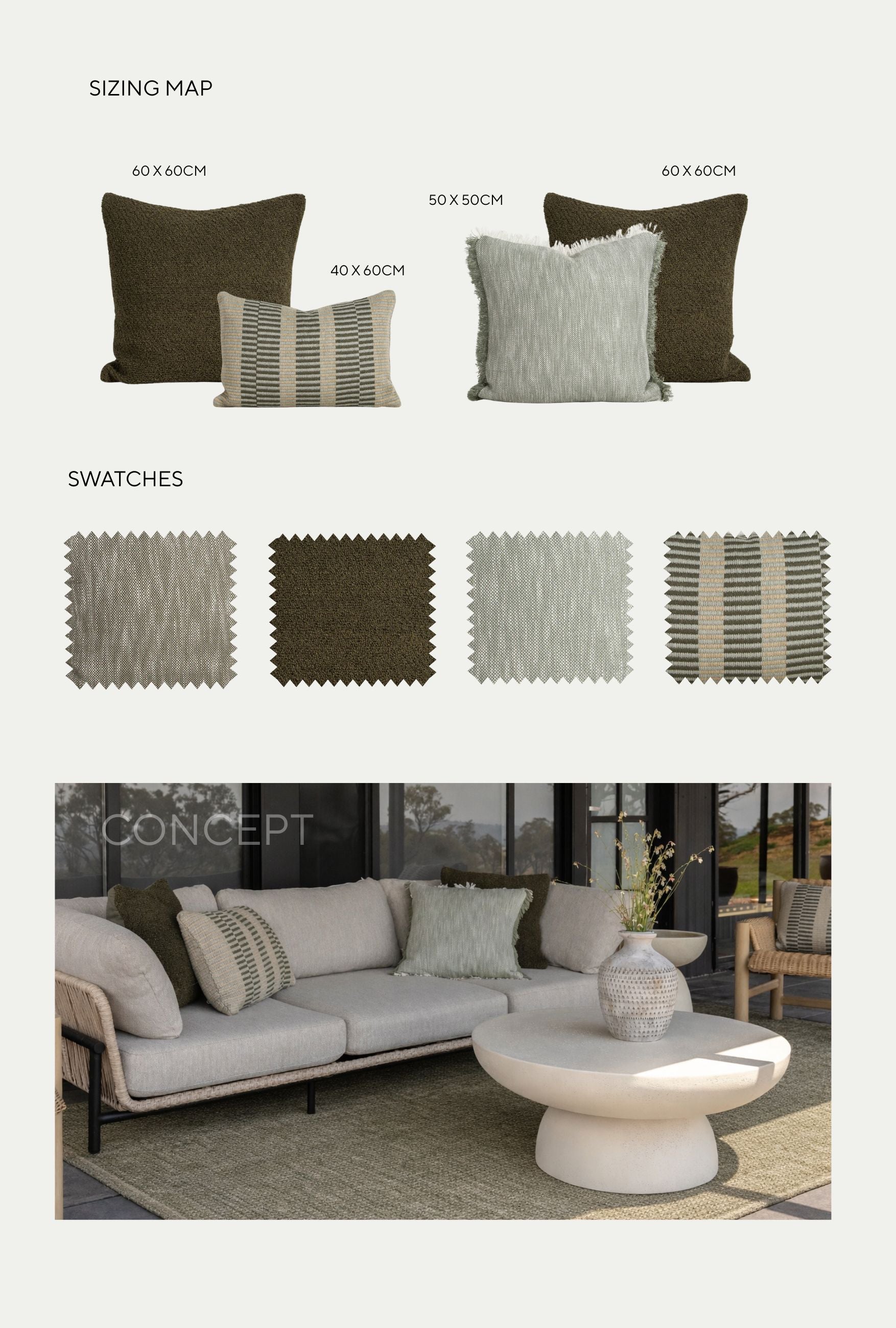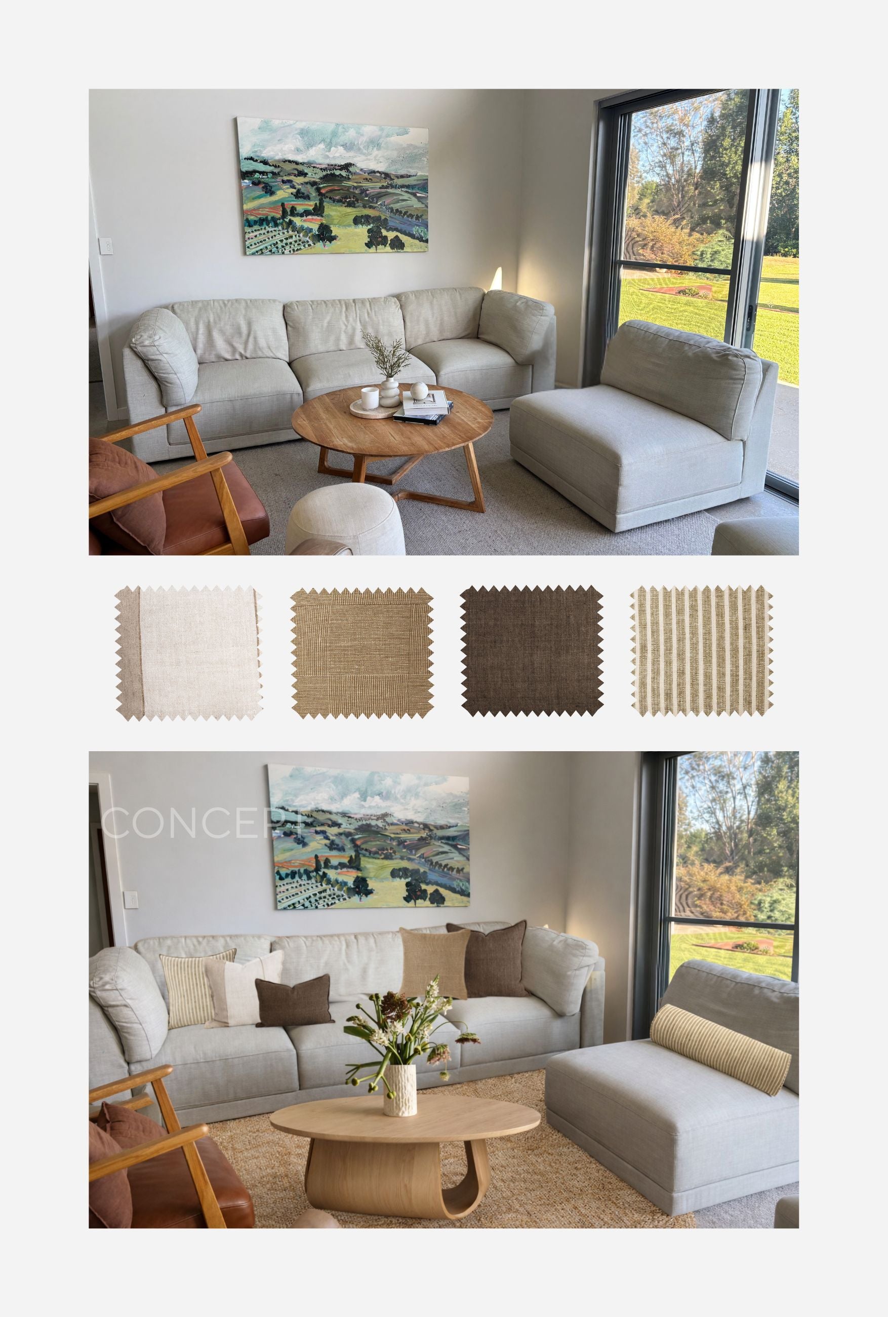 Our E-Virtual Styling service takes the guesswork out of layering. Whether it’s your living room sofa or outdoor setting, our stylists curate a personalised cushion combination tailored to your space, light and lifestyle.
