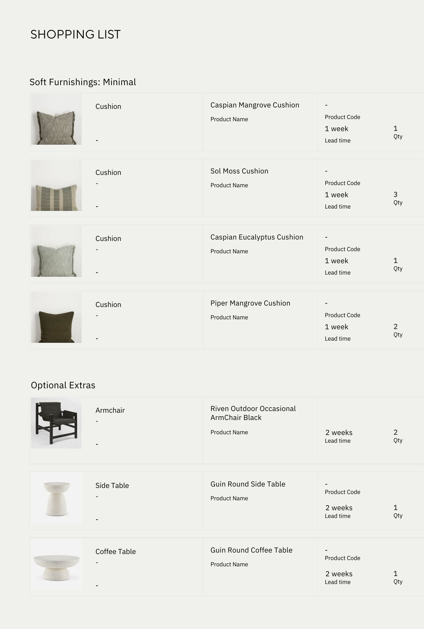 Concepts Delivered – Receive a cohesive cushion look with boards, placement maps and a shoppable list.