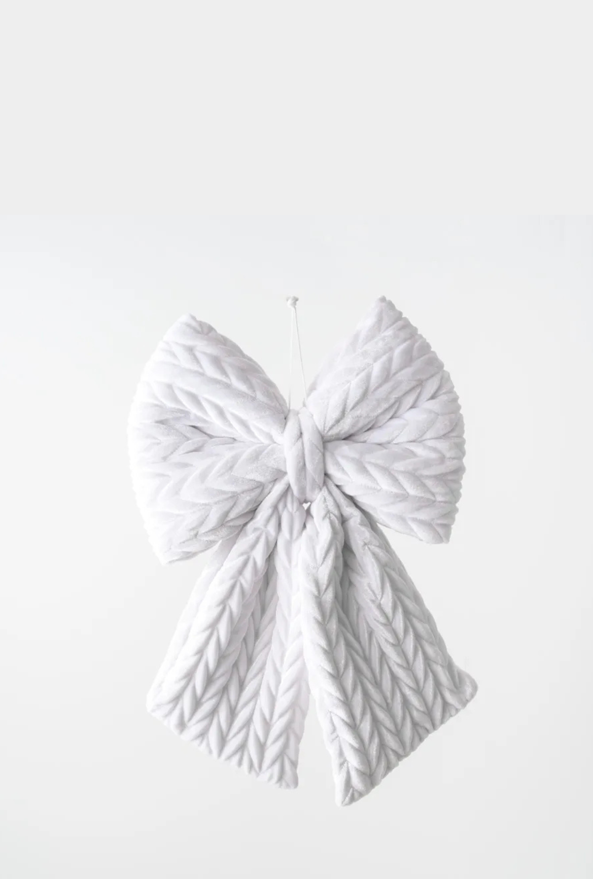This classic white fabric hanging Christmas bow is perfect for door features, fireplace decorations, and other festive moments, adding a touch of holiday cheer to any space.